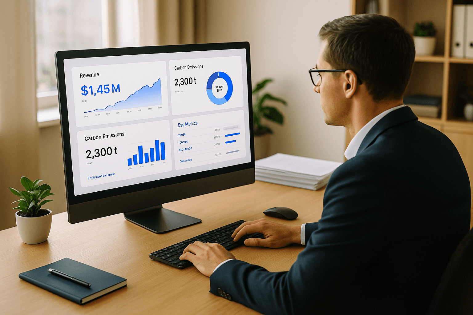 Financial KPIs, such as EBITDA or return on assets, should be assessed alongside sustainability metrics. For example, emissions intensity (measured in tCO₂e per £ revenue), energy efficiency trends, and waste reduction percentages can offer a more comprehensive view of performance. This integrated approach helps clients track progress while uncovering links between operational efficiency and environmental impact.
