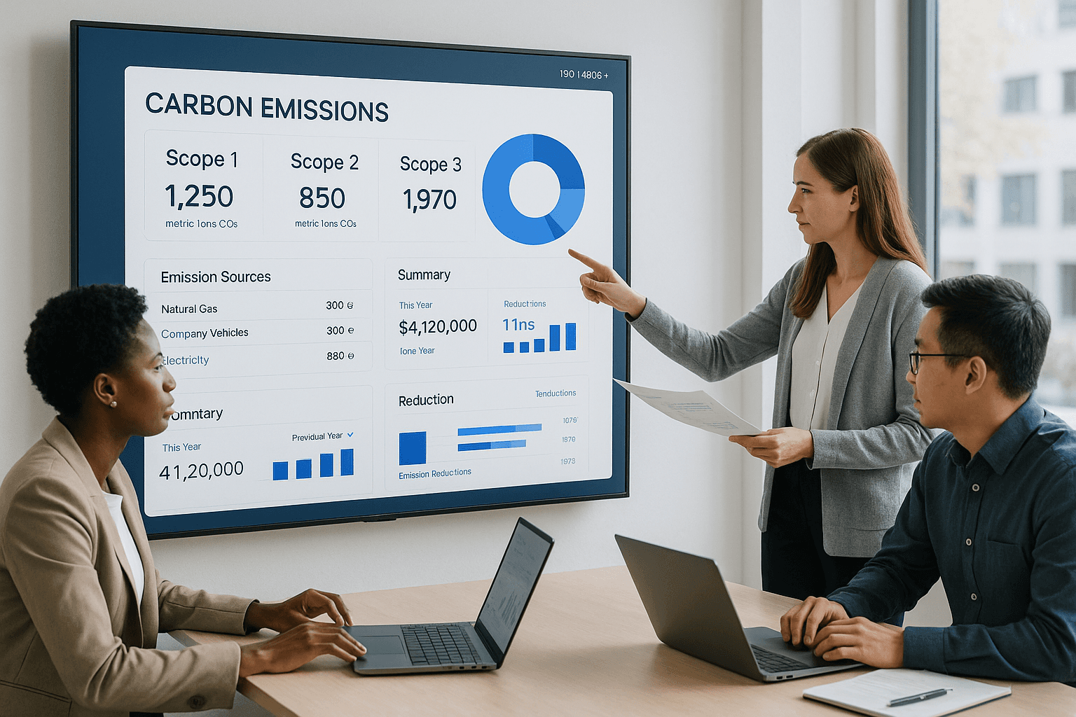 A manufacturing company might report emissions from on-site fuel combustion under Scope 1, account for electricity used in production under Scope 2, and include supplier activities or waste disposal under Scope 3.