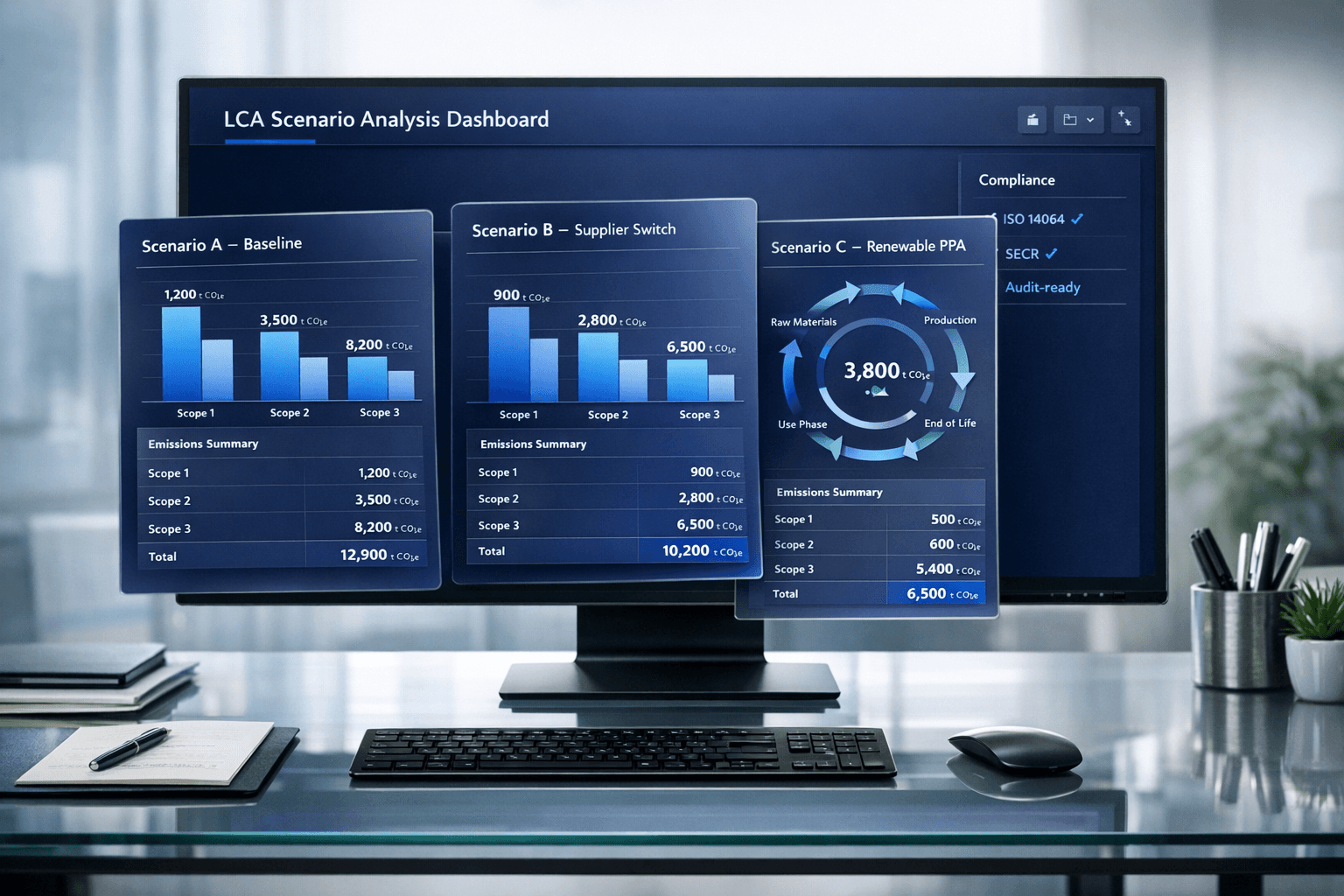 Explore how LCA scenario analysis modelling Scope 1-3 emissions ensures ISO 14064/SECR compliance and audit-ready carbon reporting.