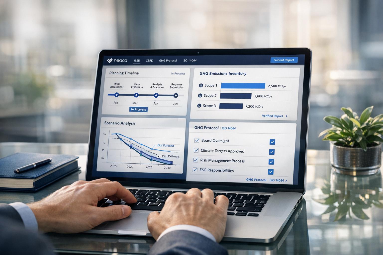 For firms handling multiple client disclosures, automated platforms can be a game-changer. They simplify the process of capturing and calculating Scope 1–3 emissions while maintaining a secure audit trail for Module 7. Running a gap analysis before submission helps you organise data and pinpoint any missing information across all scopes. For Scope 3 gaps, it’s worth reaching out directly to suppliers to gather primary data rather than relying on secondary estimates. Tools like neoeco can also reduce manual workload. This platform automatically maps transactions to recognised emissions categories under GHGP and ISO 14064, delivering finance-grade, audit-ready carbon data. It’s a practical way to ensure consistency and accuracy across all modules.