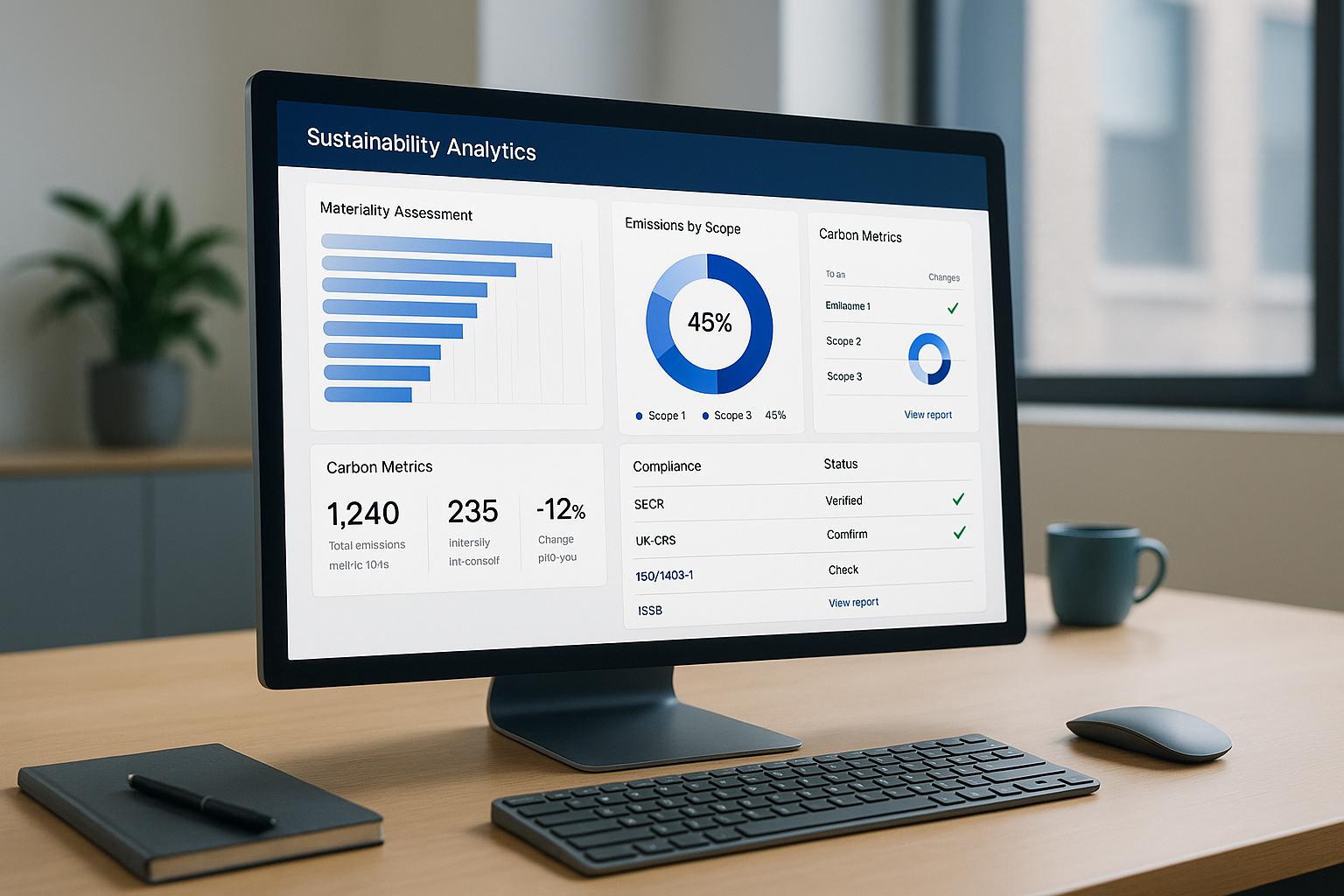 Real-time dashboards for tracking materiality updates and emissions metrics.