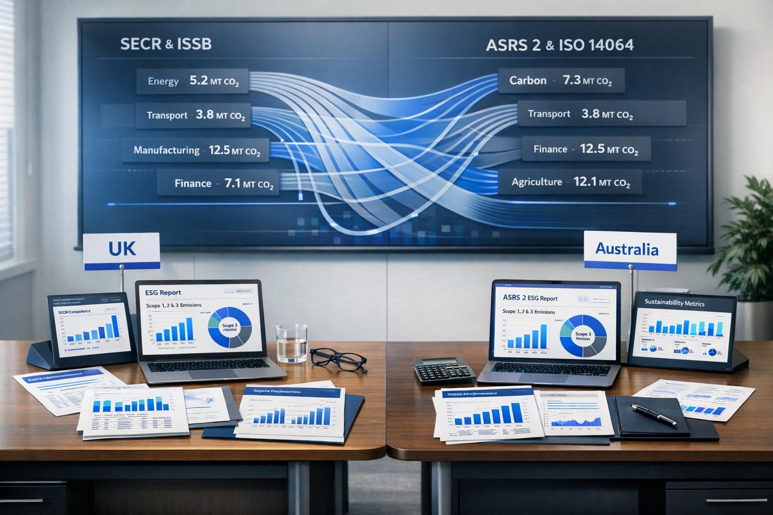Compare UK SECR/SRS with Australia’s ASRS 2 — key differences in Scope 3, sector impacts, timelines and data needs to plan cross‑border ESG reporting.